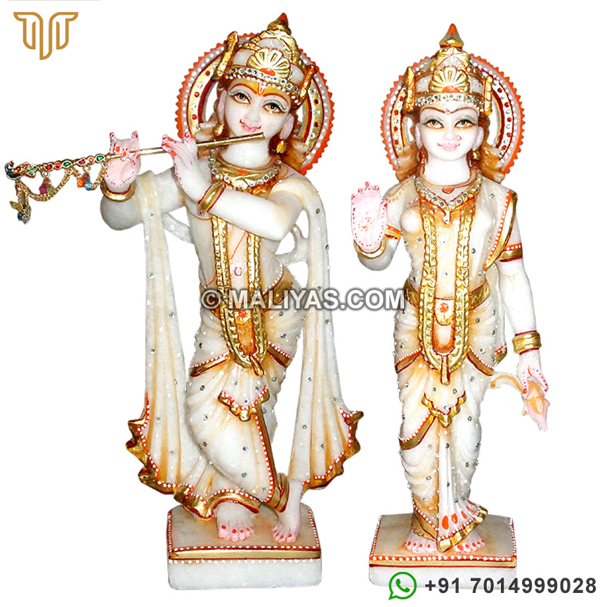 Marble radha Krishna with supper fine carving and painting work. These Radha Krishna carved out from pure Makrana marble (the best quality marble of India) are the distinguished artifact for your interiors and worship.