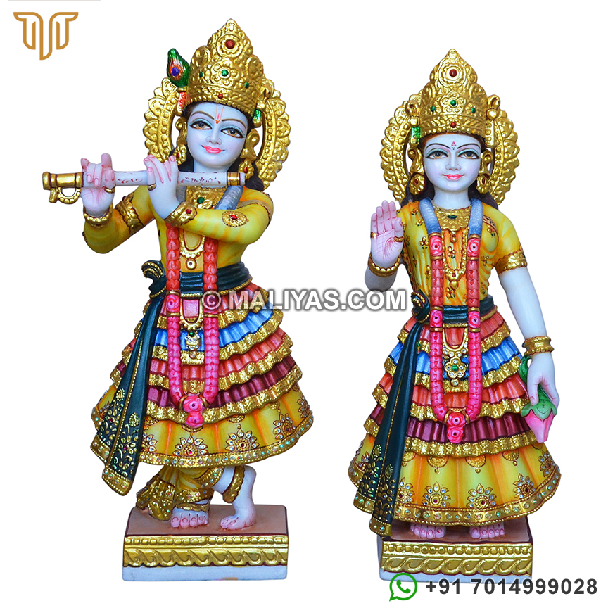 Standing Colored Marble Radha krishna statue. Made using high quality marble, this statue tuewhen finished and polished reflects an unparalleled shine.