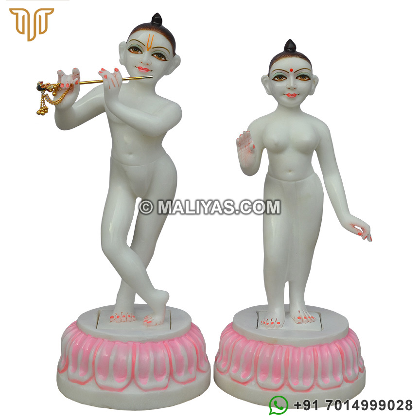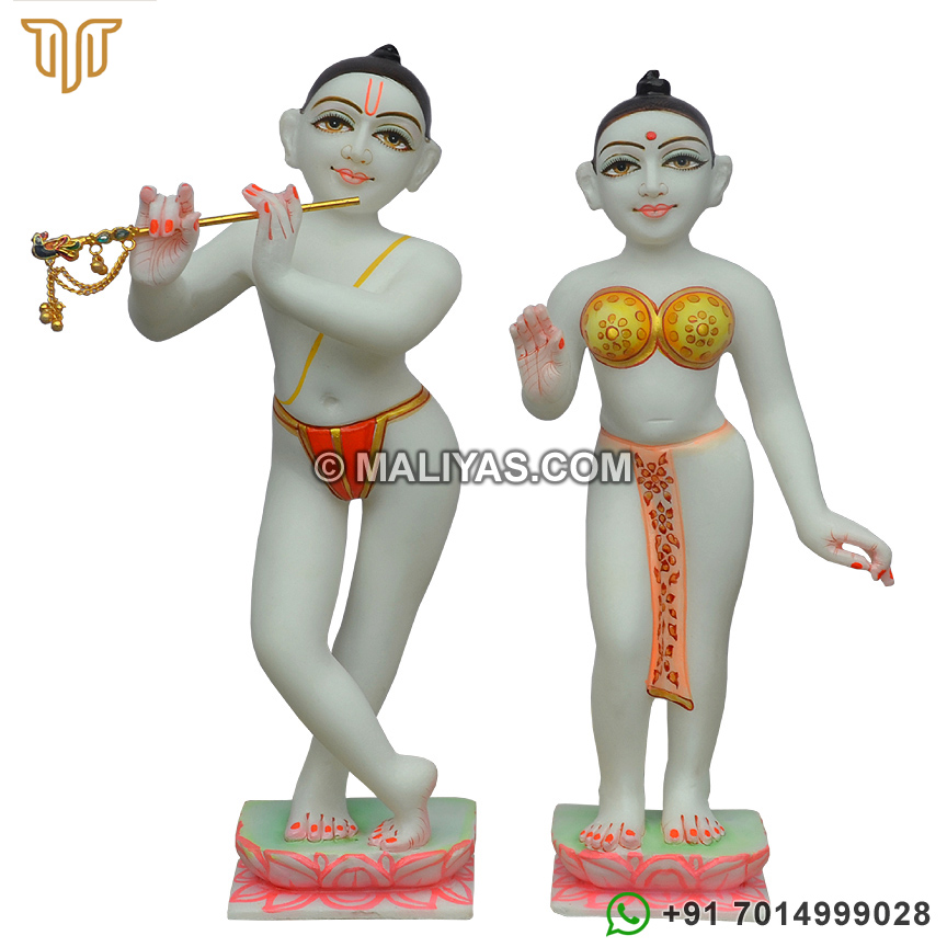 Exquisite Radha Krishna Isckon Statue. Made using high quality marble, this statue tuewhen finished and polished reflects an unparalleled shine.