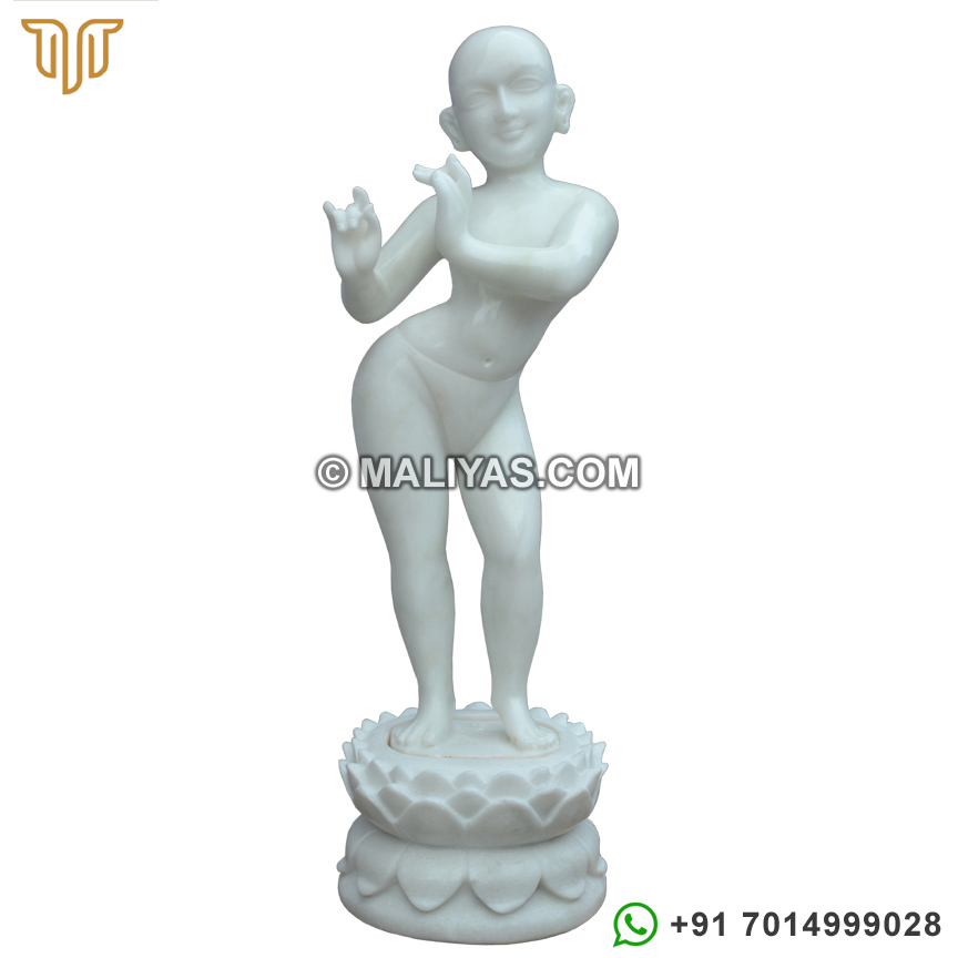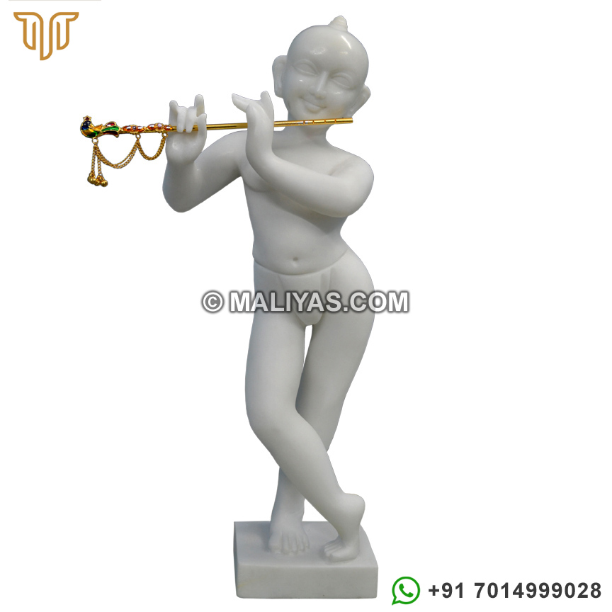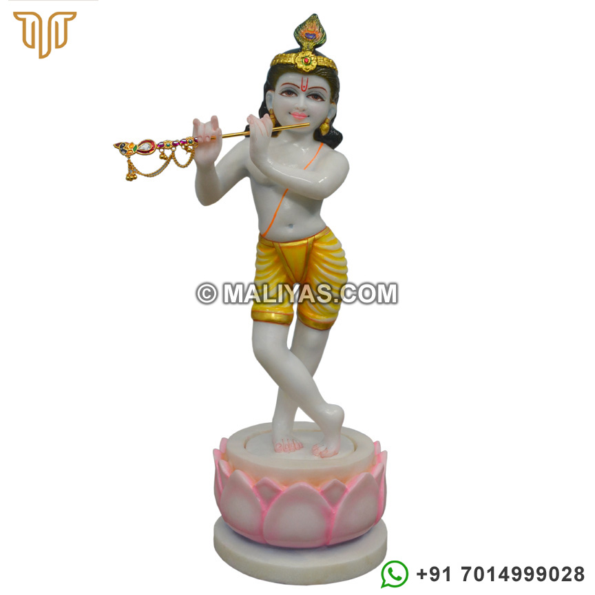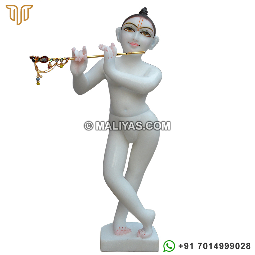 Lord Iskcon Krishna Spotless White Marble. Made using high quality marble, this statue tuewhen finished and polished reflects an unparalleled shine.