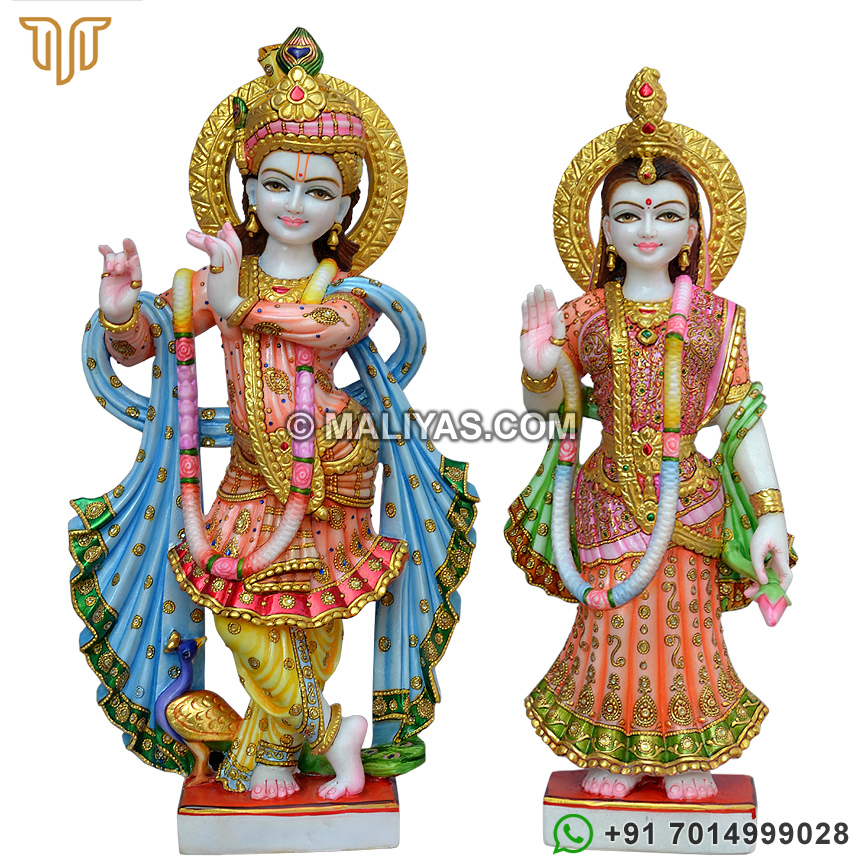 Isckon Antique Marble Radha Krishna Statue. Made using high quality marble, this statue tuewhen finished and polished reflects an unparalleled shine.