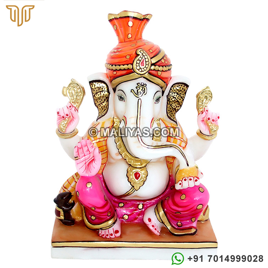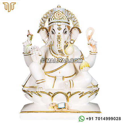 The statue presents lord Ganesh with all his weapons in his hands, sitting on a well-sculpted throne. The marble used in the statue is of the finest grade.