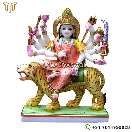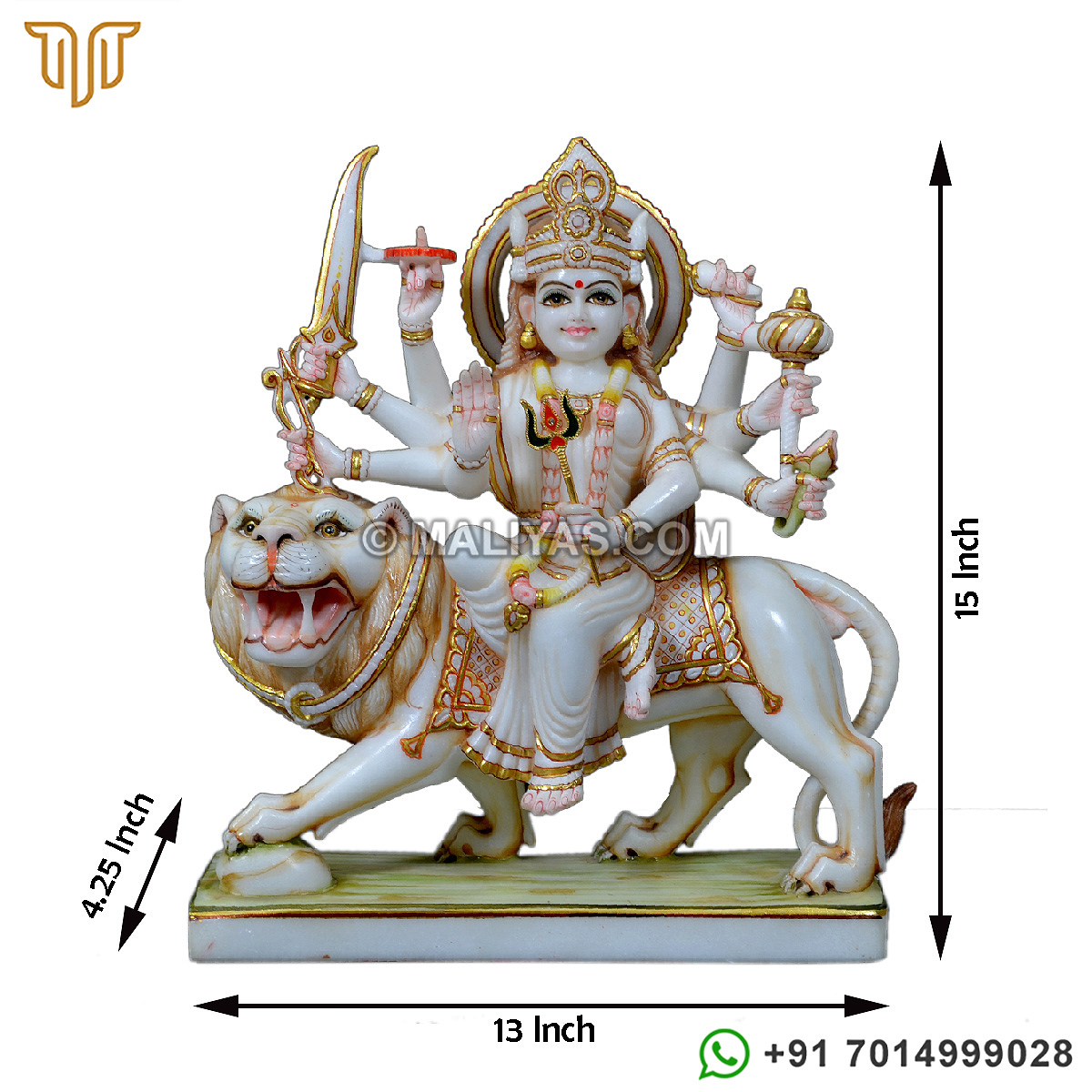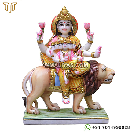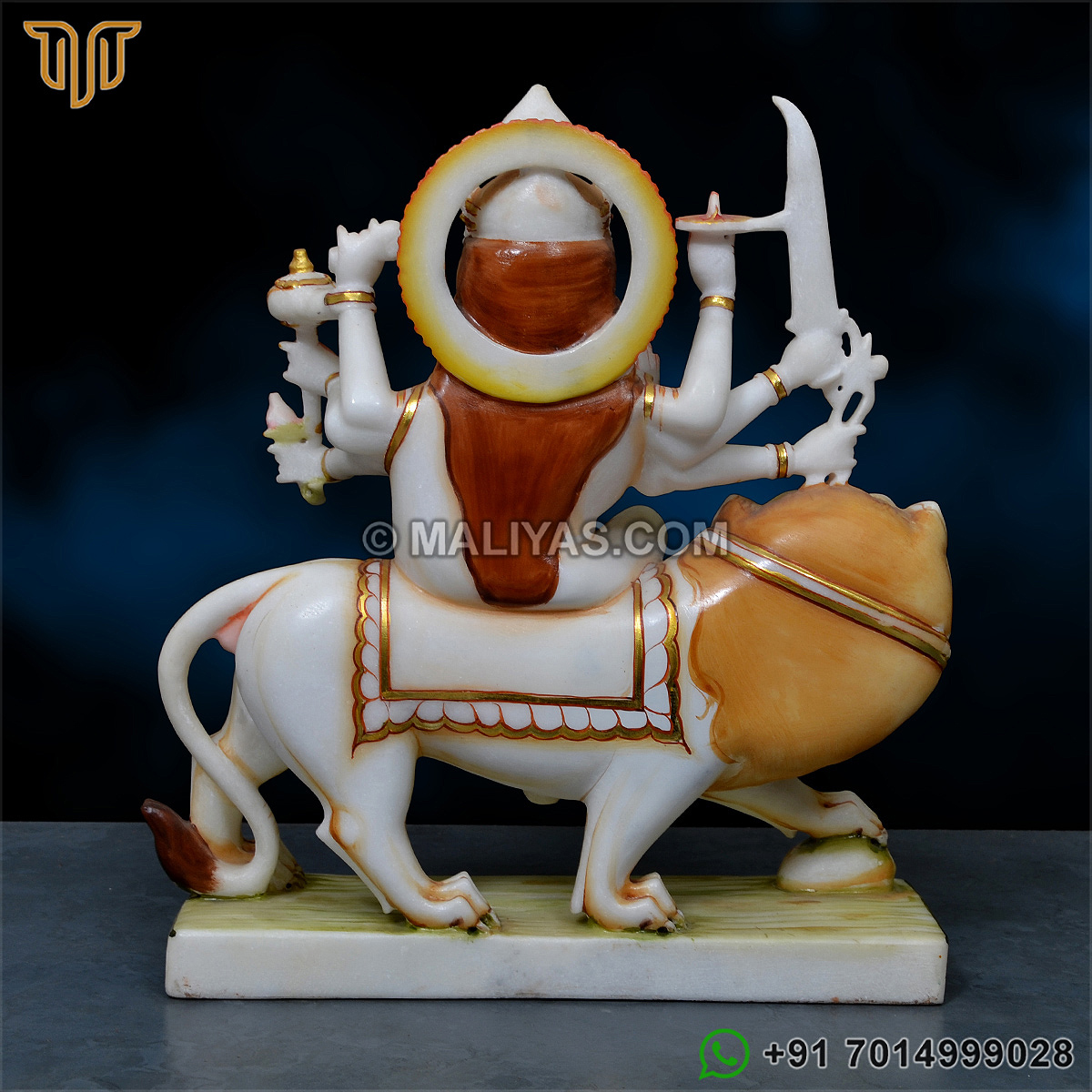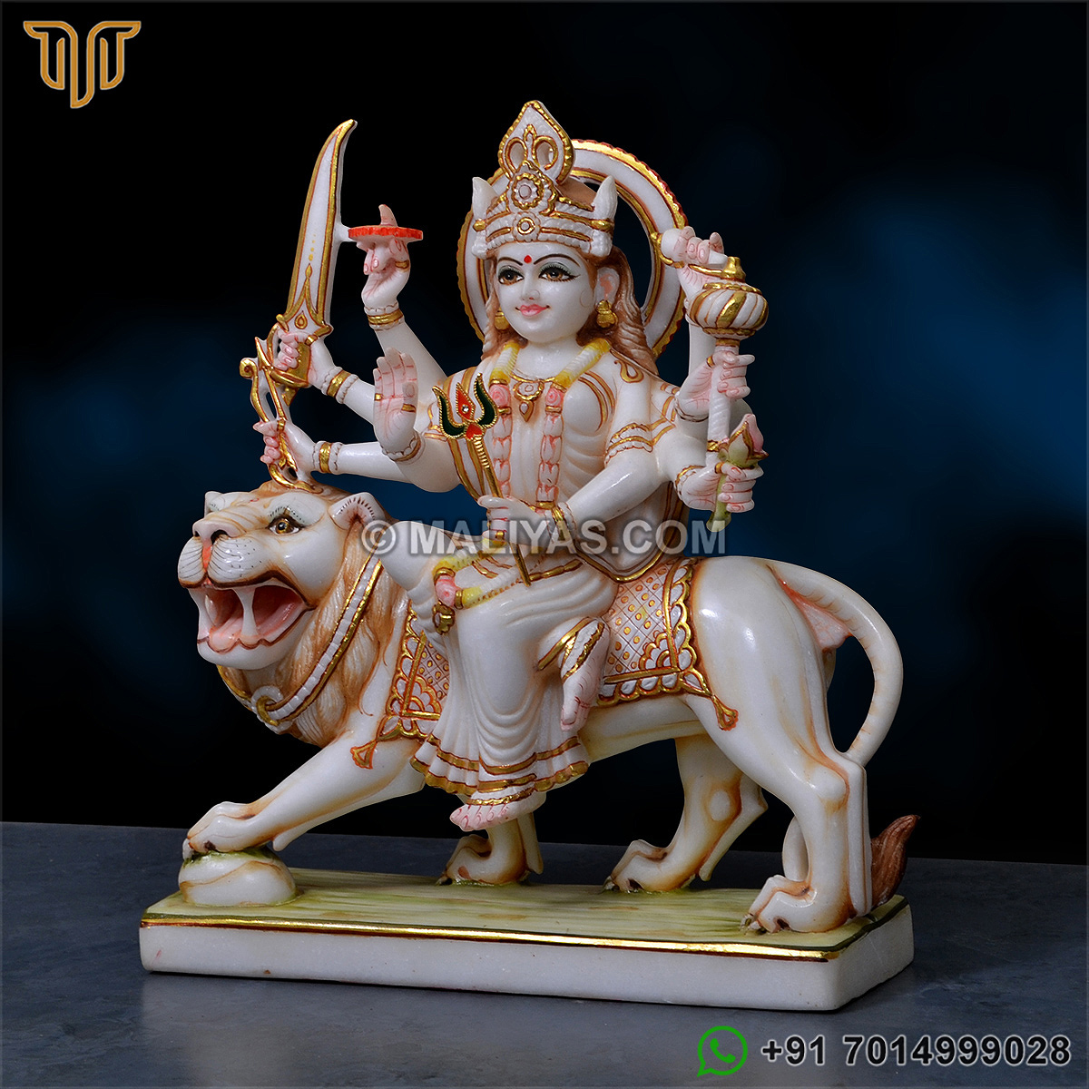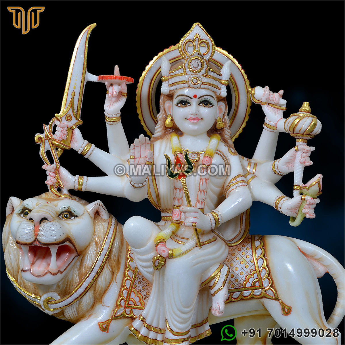 Buy maa durga marble statue online made by a senior artist in Makrana marble, which has been painted using 24CT gold foil, using idols for temple and worship.