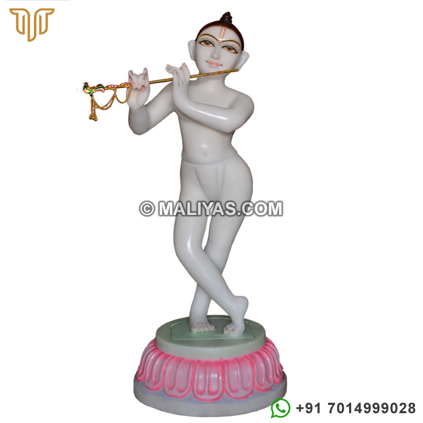 Lord Iskcon Krishna Spotless White Marble. Made using high quality marble, this statue tuewhen finished and polished reflects an unparalleled shine.