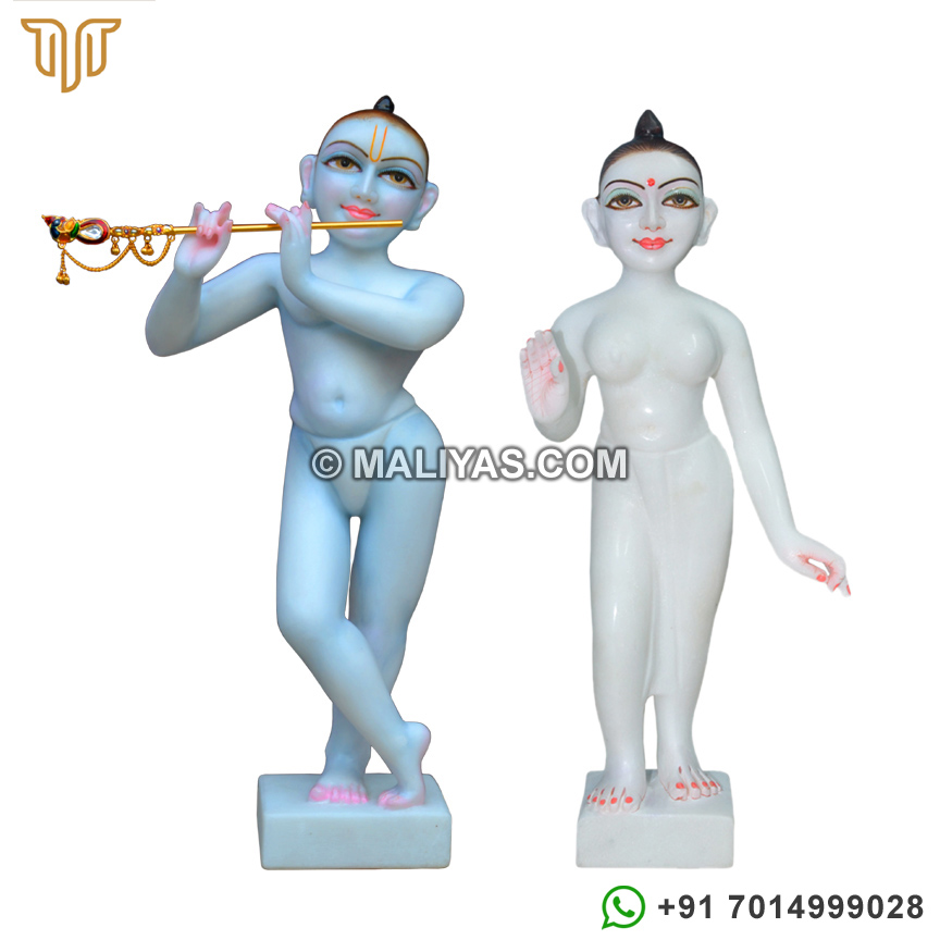 Iskcon Radha Krishna Pair from Marble Stone. Made using high quality marble, this statue tuewhen finished and polished reflects an unparalleled shine.