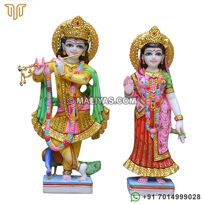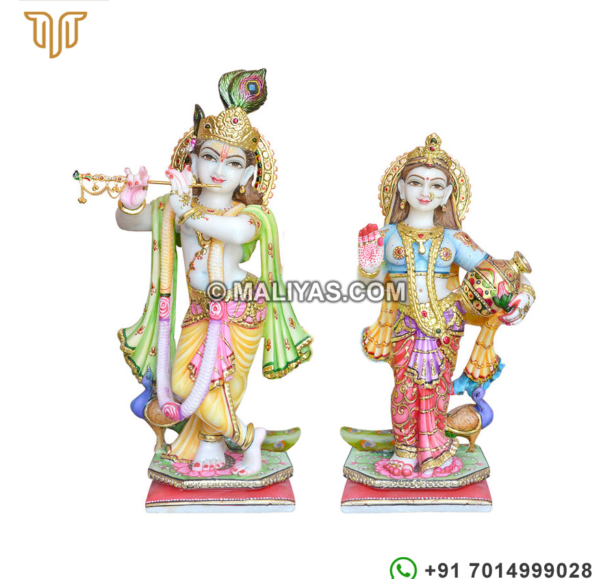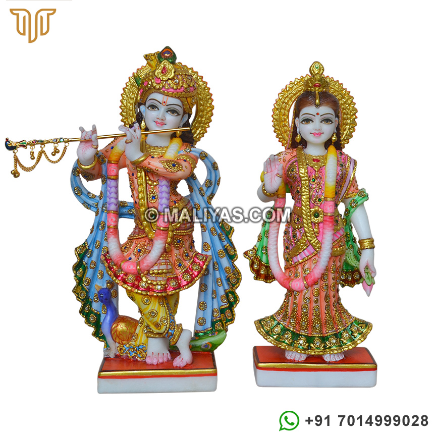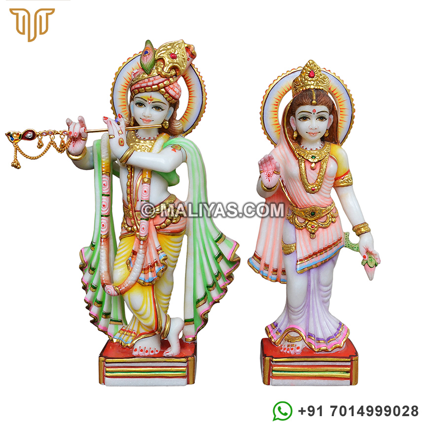 Marble Radha Krishna statue with painting. Made using high quality marble, this statue tuewhen finished and polished reflects an unparalleled shine.