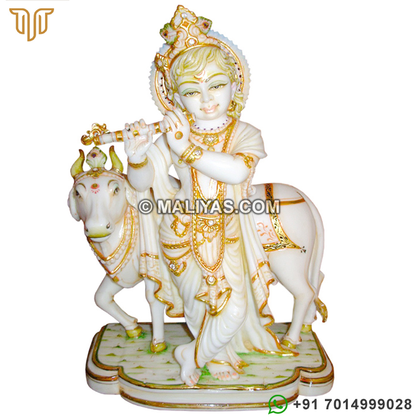 This Krishna Standing with Cow is carefully handcrafted by our skilled artisans. Sculpted from high quality white Makrana Marble.