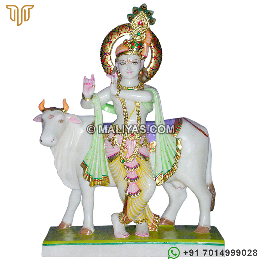 Lord Krishna is stating with cow. This statue made from high quality marble and are painted in attractive designs.