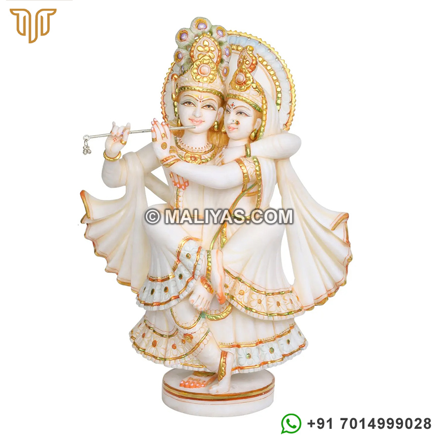 Standing Colored Marble Radha krishna statue. Made using high quality marble, this statue tuewhen finished and polished reflects an unparalleled shine.