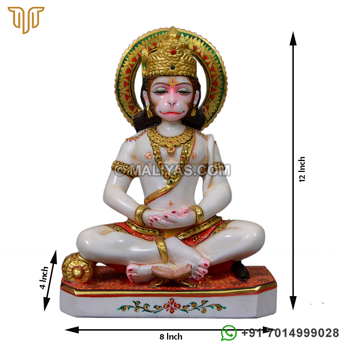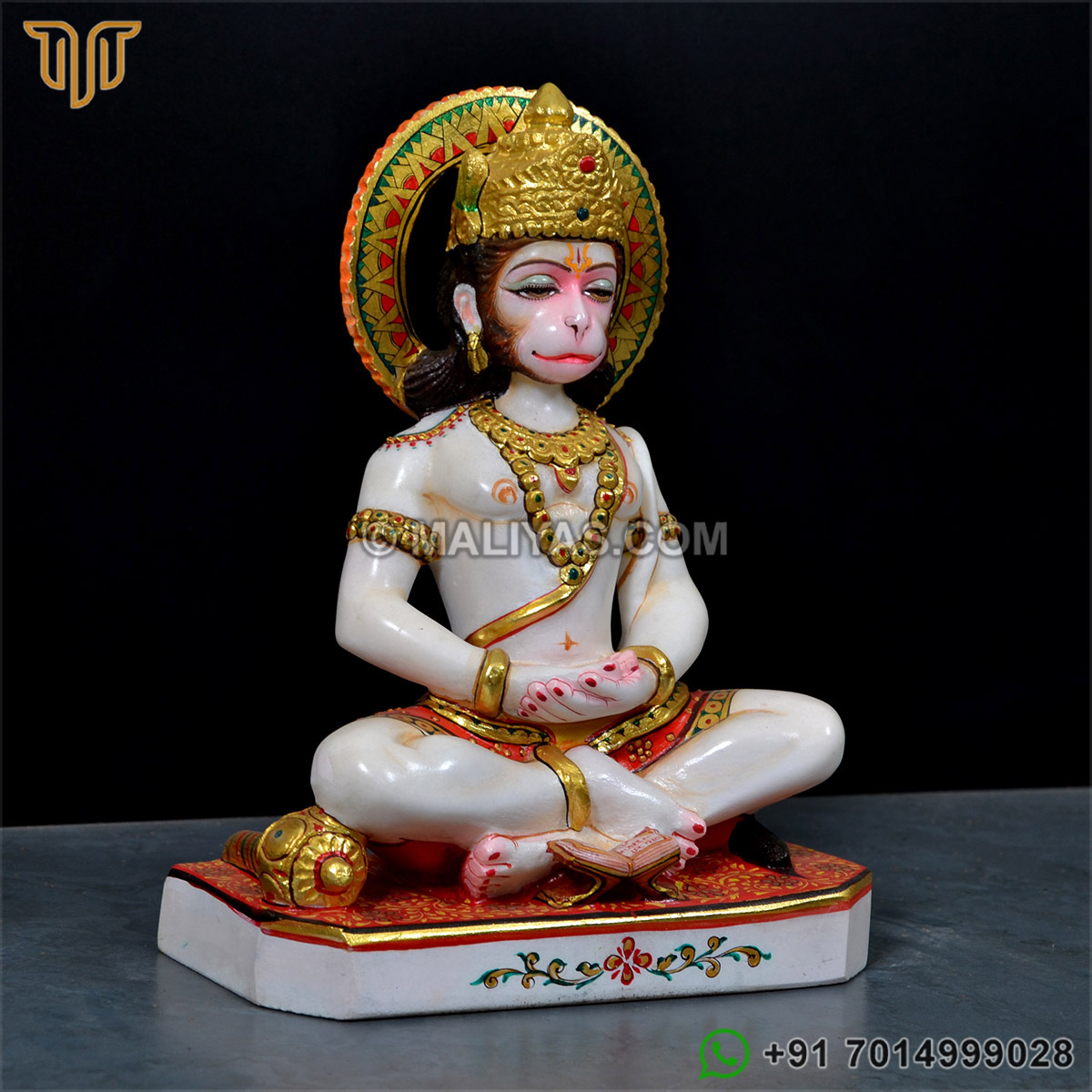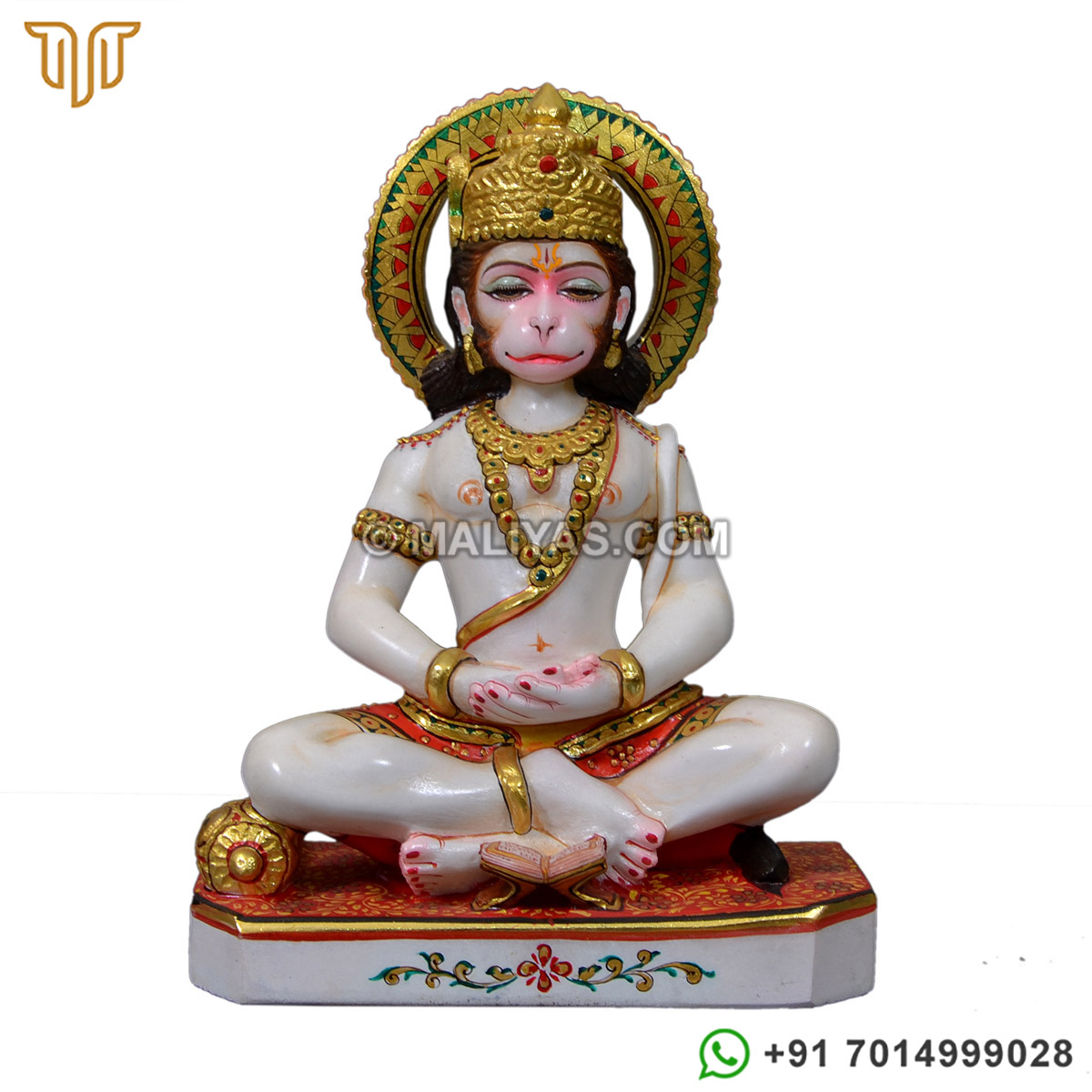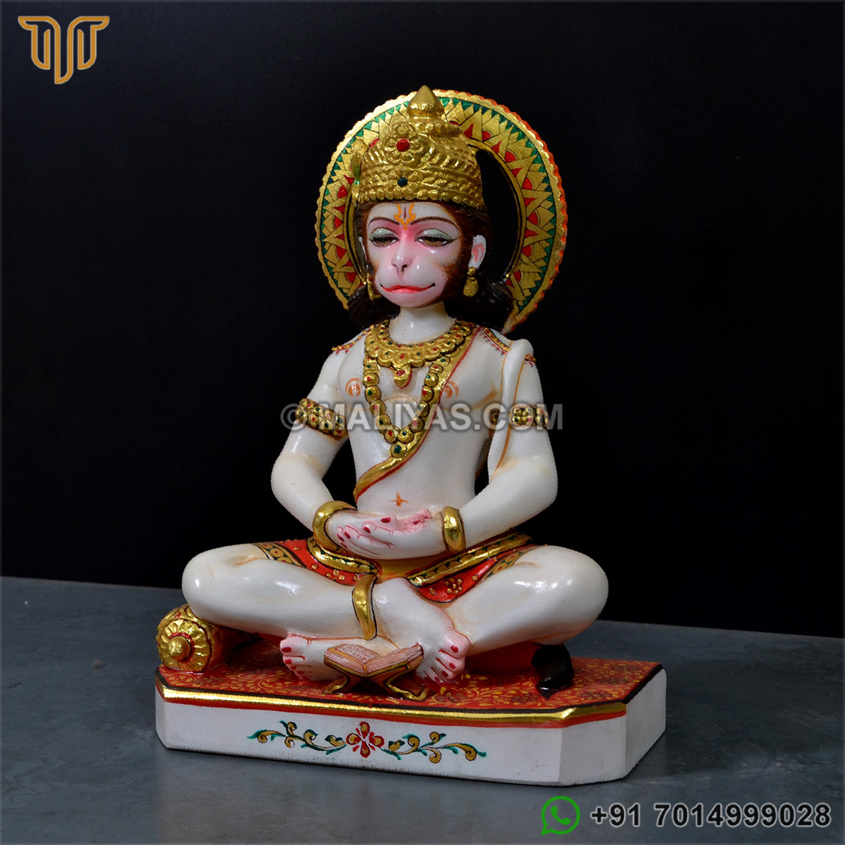 Marble Seated Dhyana Meditation Hanuman Sculpture - MSTH248