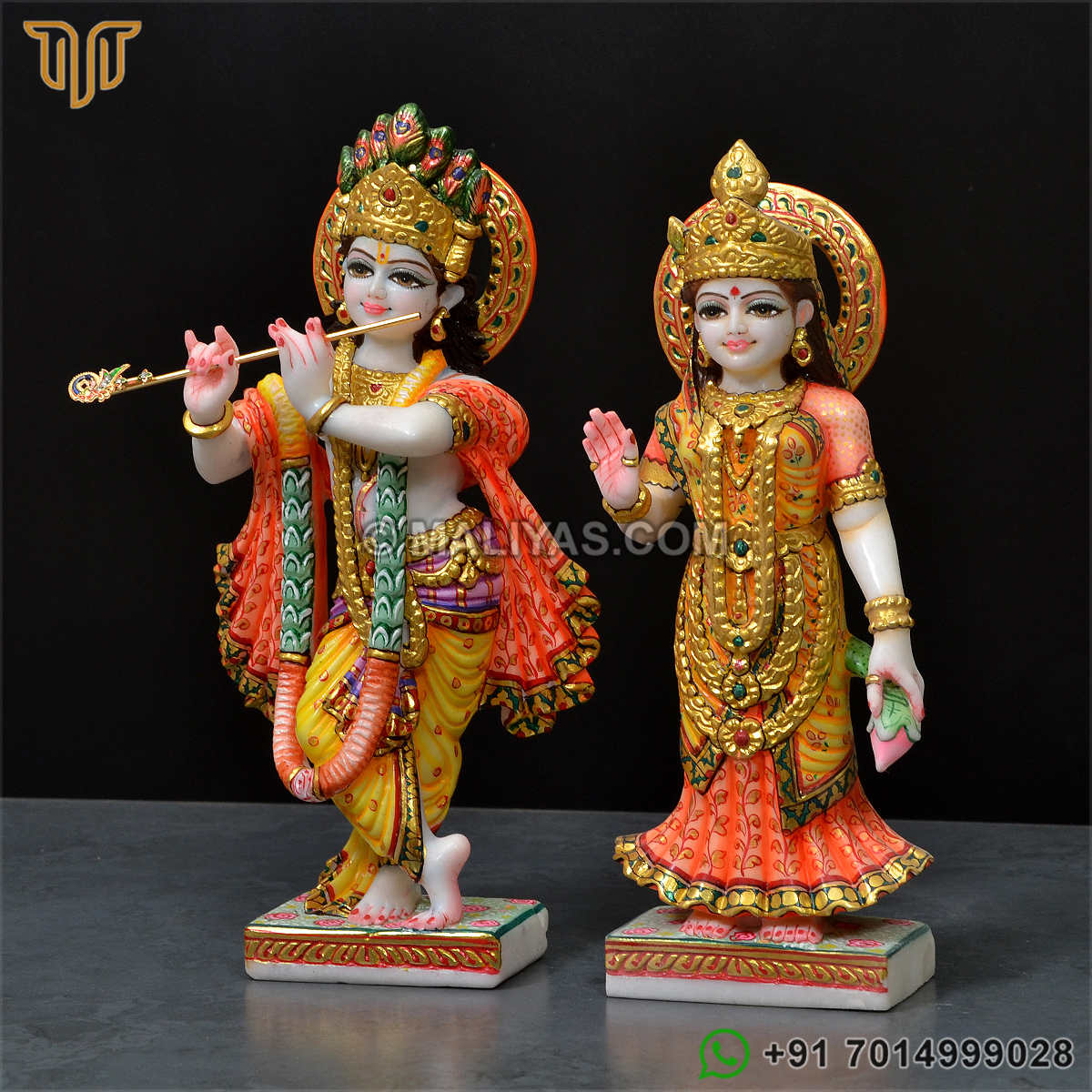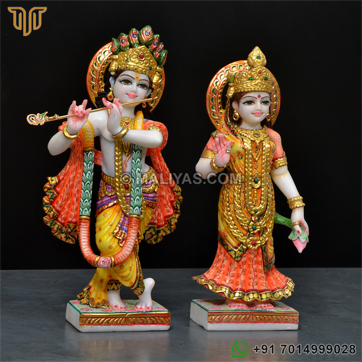 This statues made from high quality marble and are painted in attractive designs. This radha Krishna statues a perfect example of our mastery in marble statues.