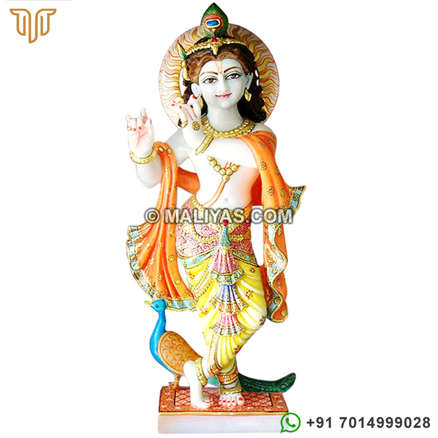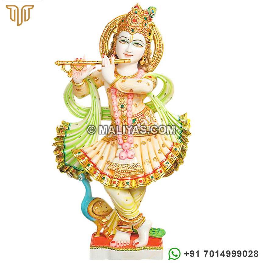 This Krishna Statue statue made from high quality marble and are painted in attractive designs. This Krishna statue a perfect example of our mastery in marble statues.