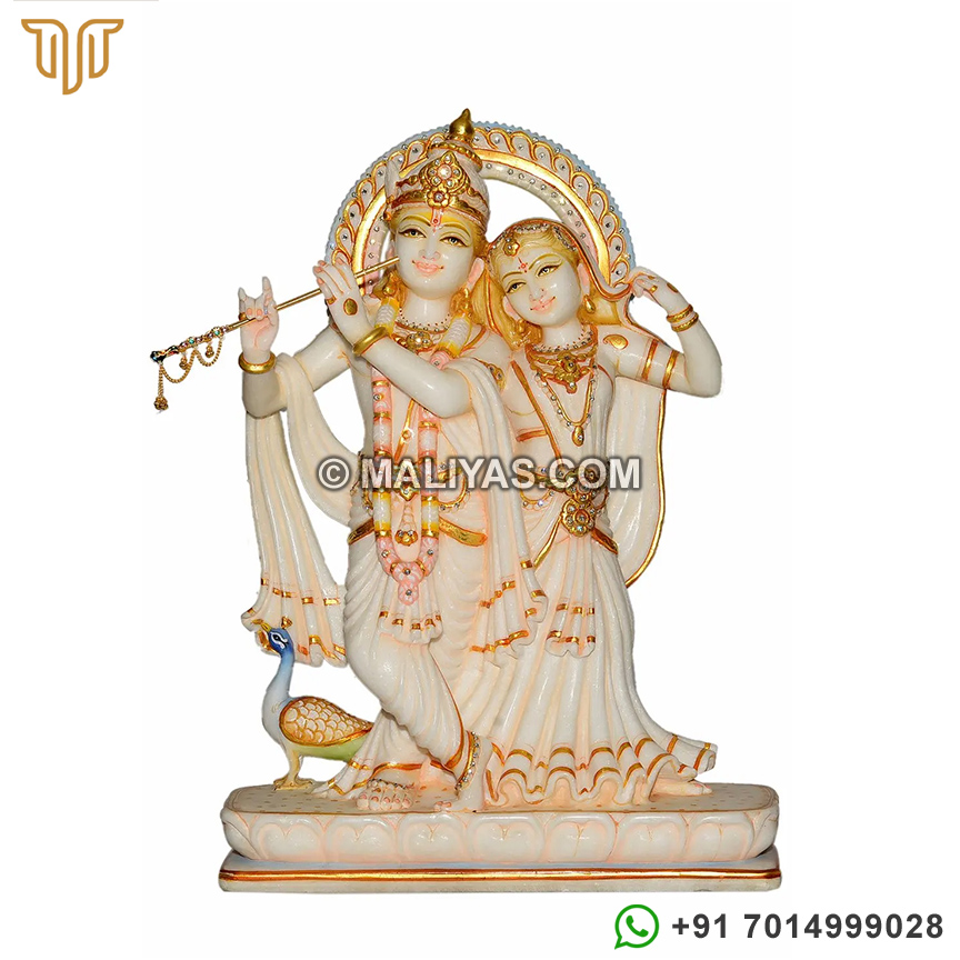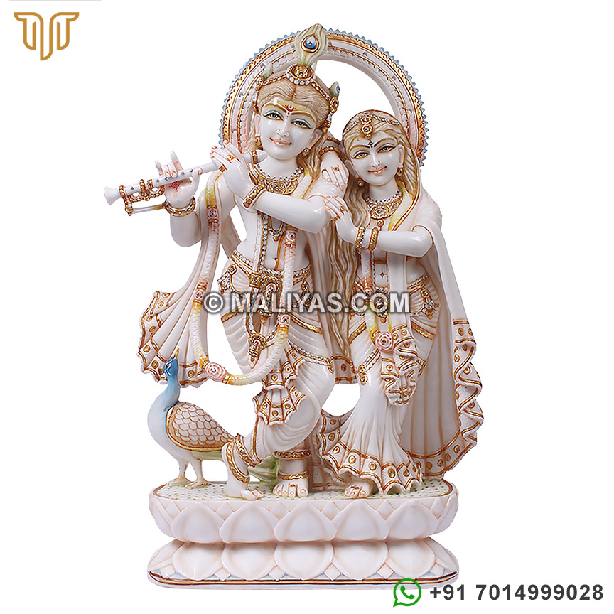 Standing Colored Marble Radha krishna statue. Made using high quality marble, this statue tuewhen finished and polished reflects an unparalleled shine.